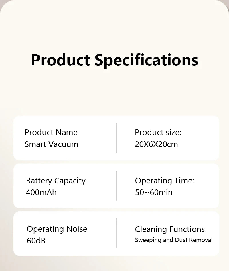 6000Pa Ultra-Strong Suction: Easily picks up dust, crumbs, and stubborn debris.