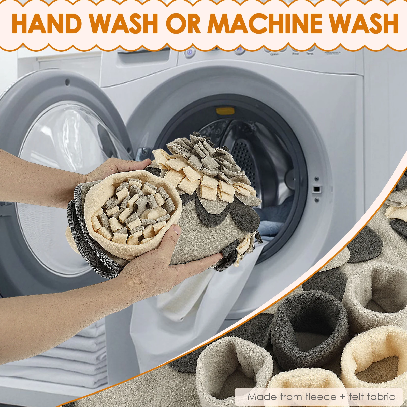 Premium Material : The sniffing mat is made of polar fleece and felt cloth . It is soft and sturdy , suitable for hand washing and machine washing . It is not easy to deform or fade , enabling convenient repeated use