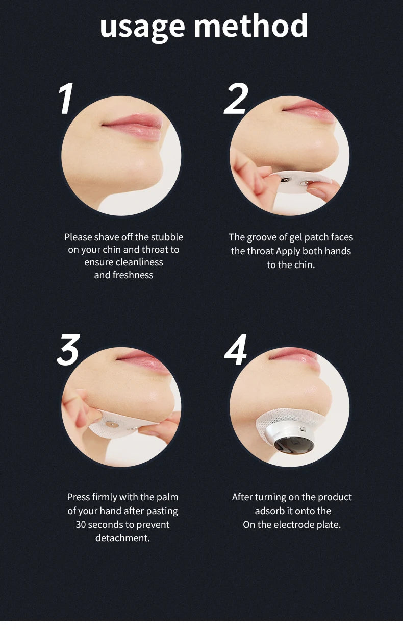 2. The groove of the gel patch faces the throat, the eyes look straight ahead, and the hands are pasted in the chin.